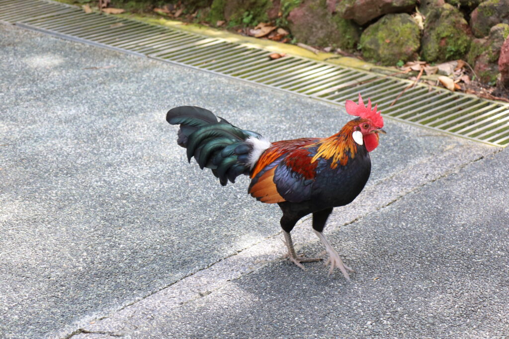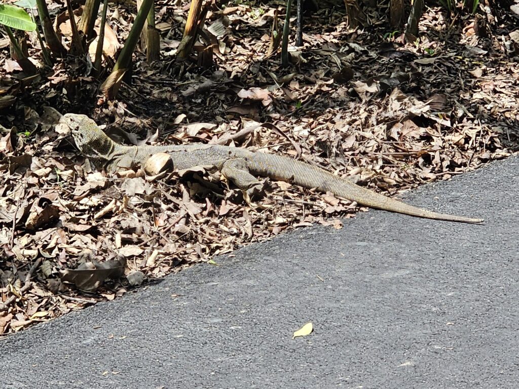 園内には、ニワトリや大きなトカゲにも遭遇しましたよ。