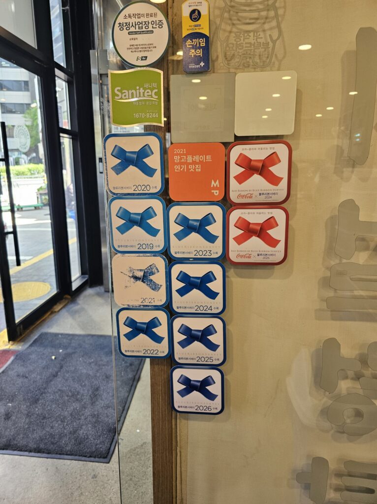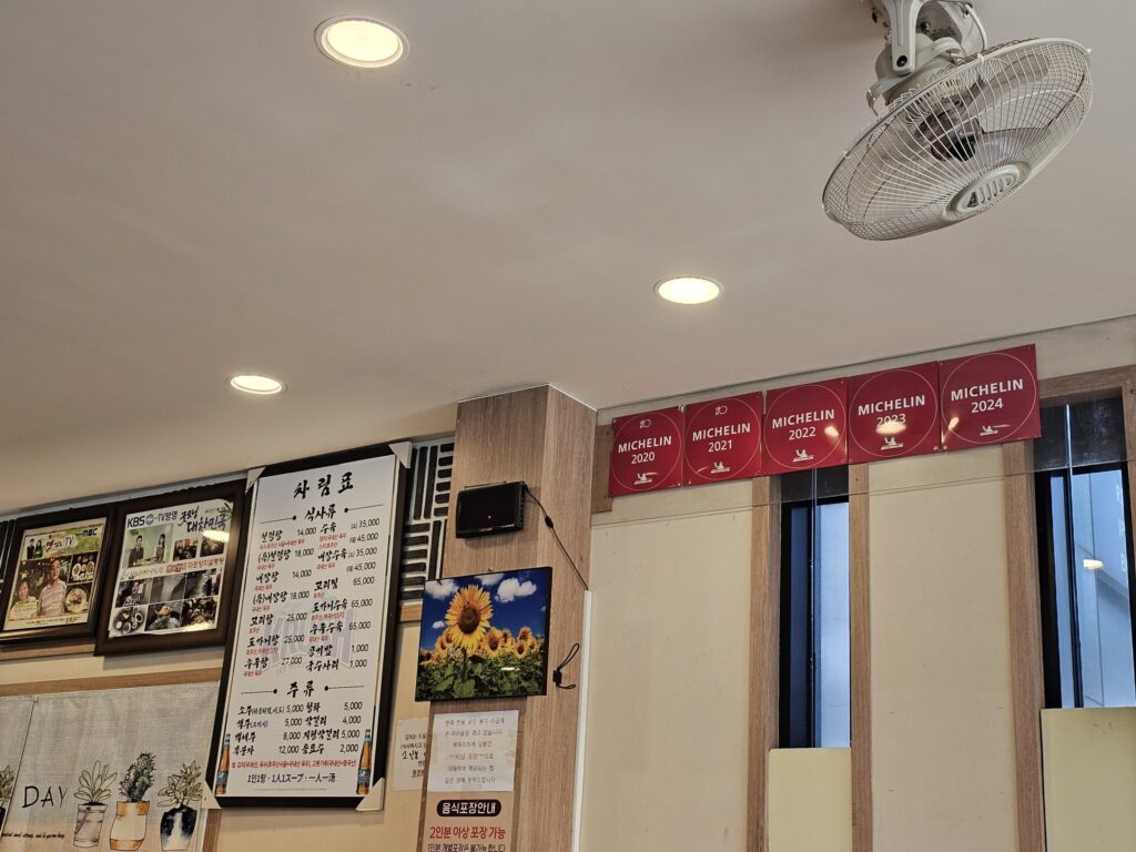 店内には、ミシュランやブルーリボンに選ばれた証がたくさん貼られています。